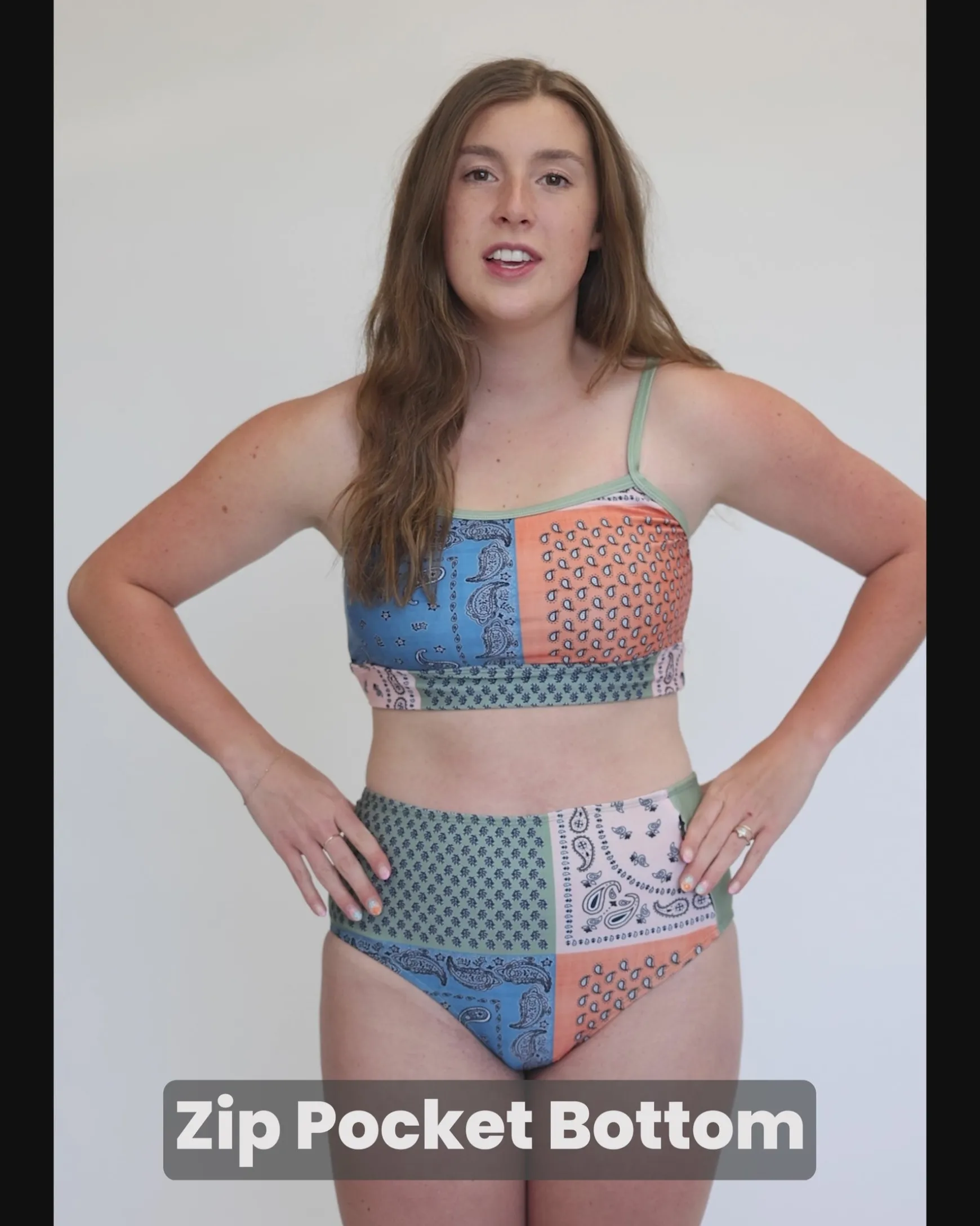This bottom is a great option for a classic, simple style with a twist featuring a hidden zipper pocket on the side panel.