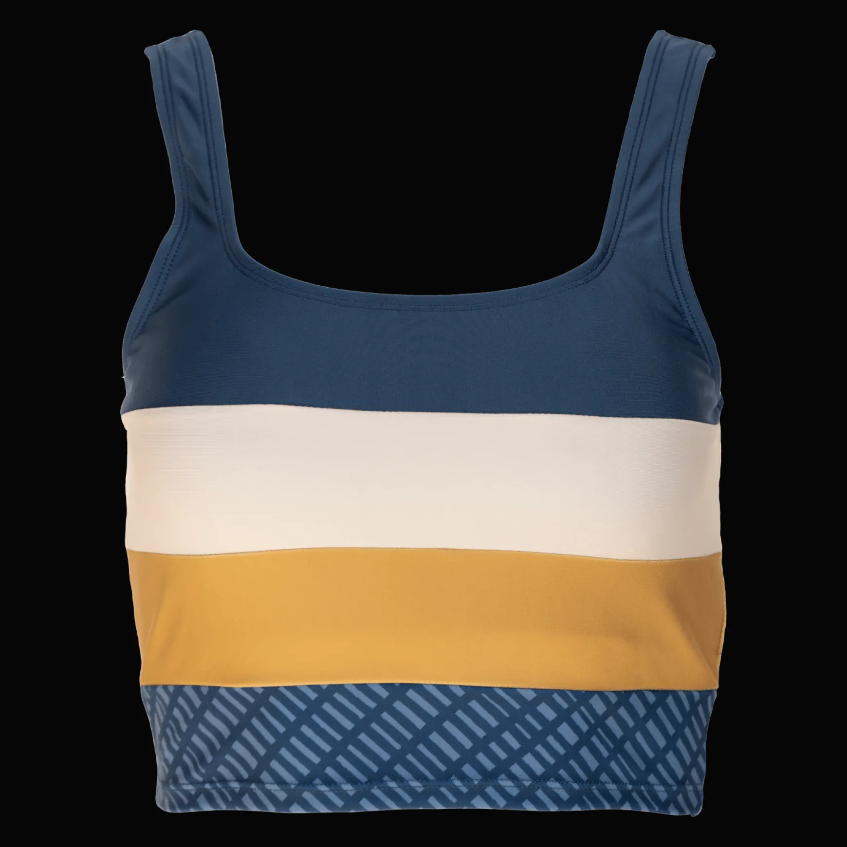 The Coastal Slate Core Crop is the new colorway in the popular Core Crop! It has the fit of a longline top, the color blocking not only adds support but makes it the perfect top to mix and match! The Coastal Slate Core Crop has a flattering scoop neckline that is for those who want to look good while also feeling comfortable and supported during any adventure.
