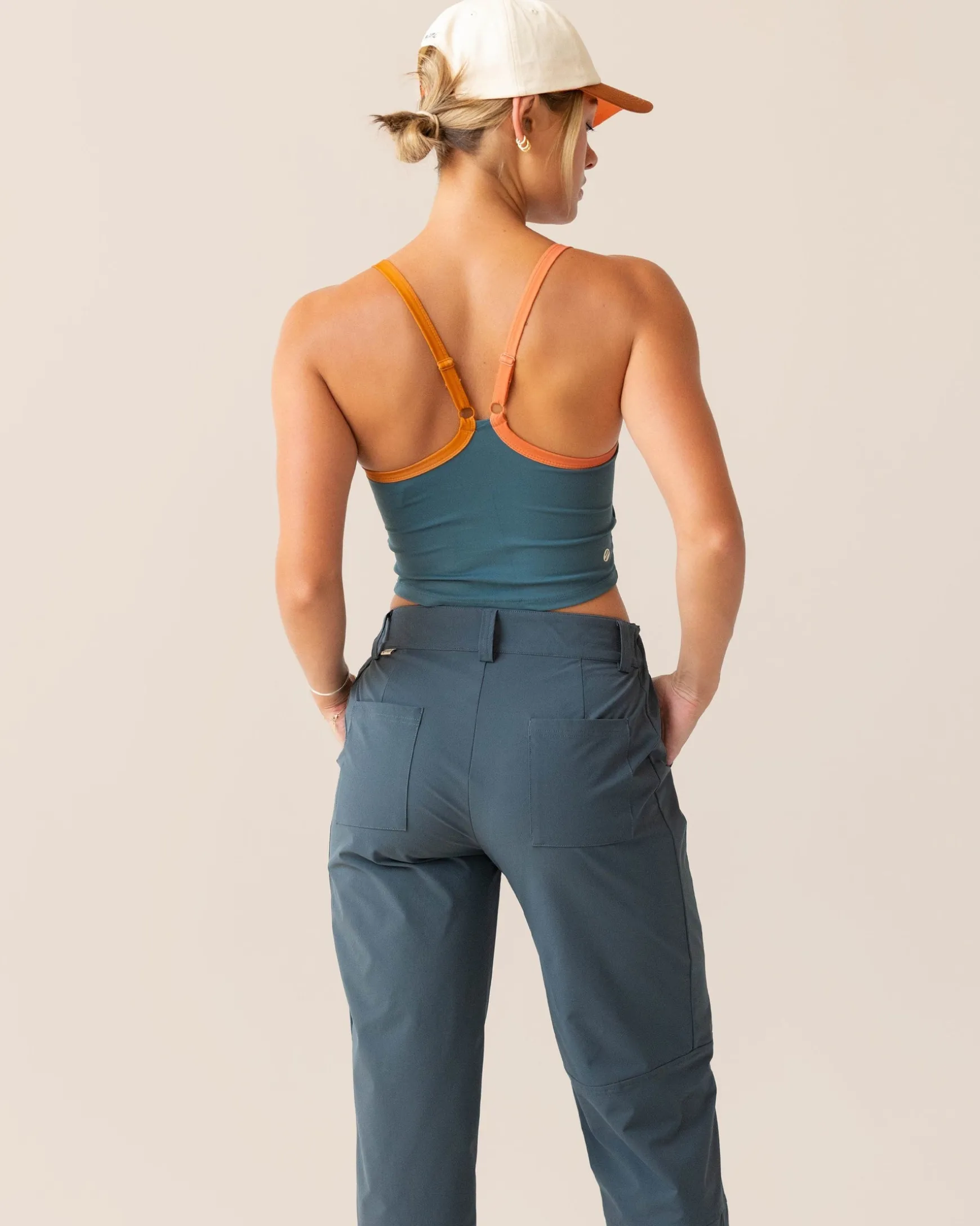 The Journey Pant in Dark Summit is built for movement and styled for life. With a tailored waistband, and subtle structure, these pants deliver all day comfort. Lightweight, breathable, and designed to transition seamlessly from trail to town, they’re your new go to for every kind of adventure.