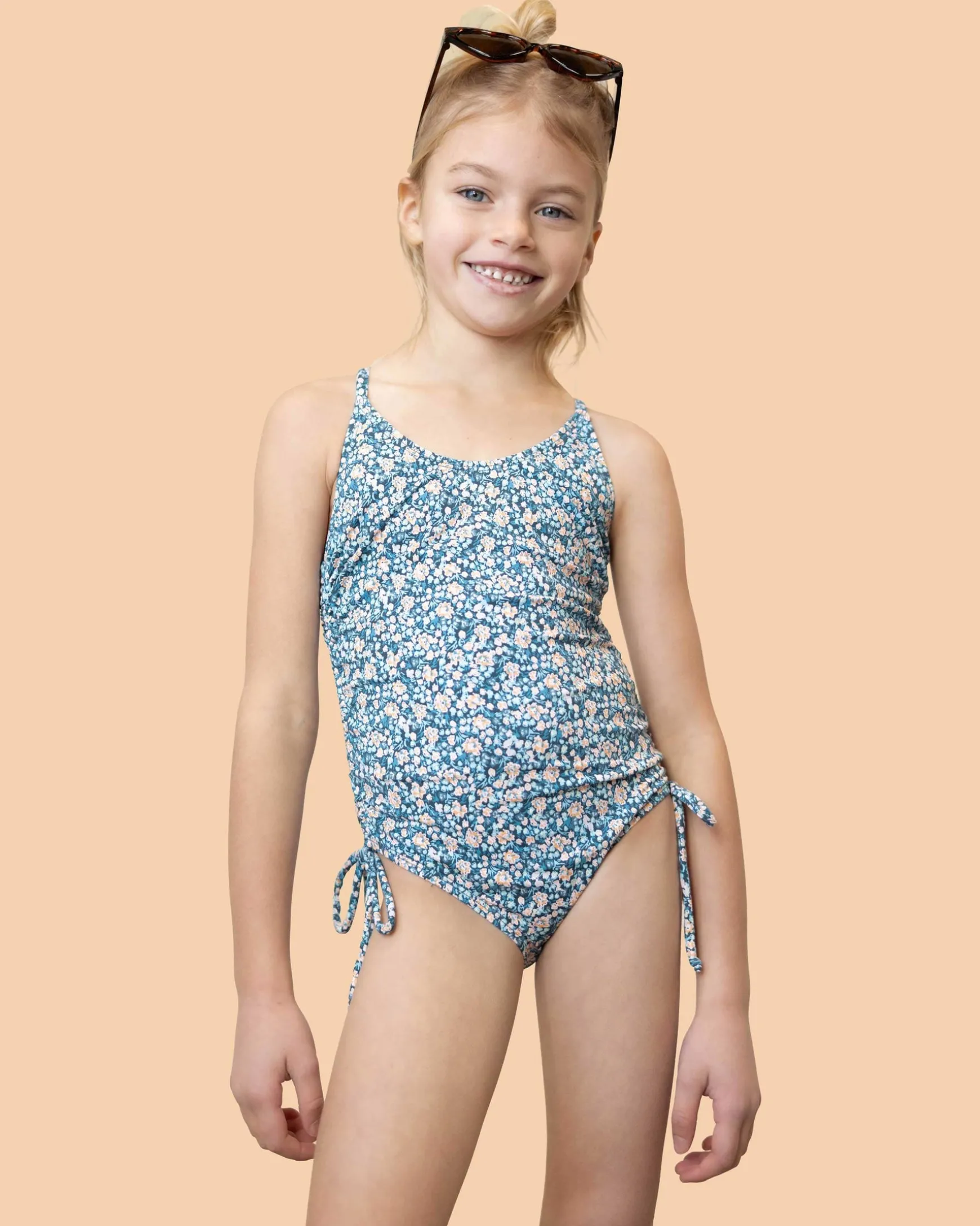 Dive into adventure with the kids and teen Girl’s Tied Up One Piece! Featuring ruching at the side seams and adjustable side ties, this swimsuit is perfect for your little explorer. Designed for comfort and durability, it effortlessly matches the whole family while keeping up with every splash and giggle. Whether she’s swimming, splashing, or building sandcastles, this one-piece will make every moment by the water unforgettable!