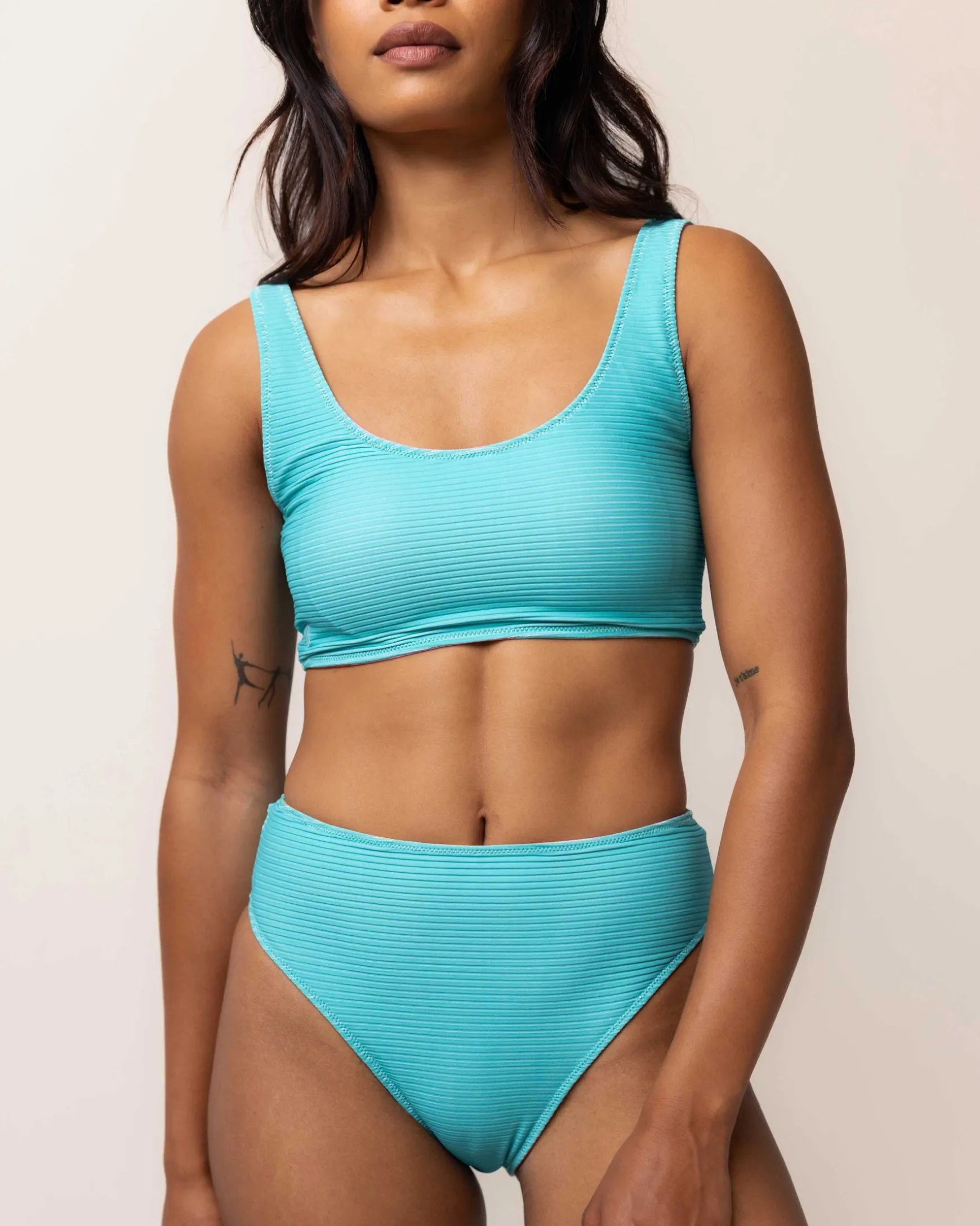 4 Ways to Wear 1 Top. Flip it. Reverse it. Mix and Match it. All in one sustainable piece. Whether sunbathing or surfing, our versatile swimsuit top is your perfect, planet-friendly companion.