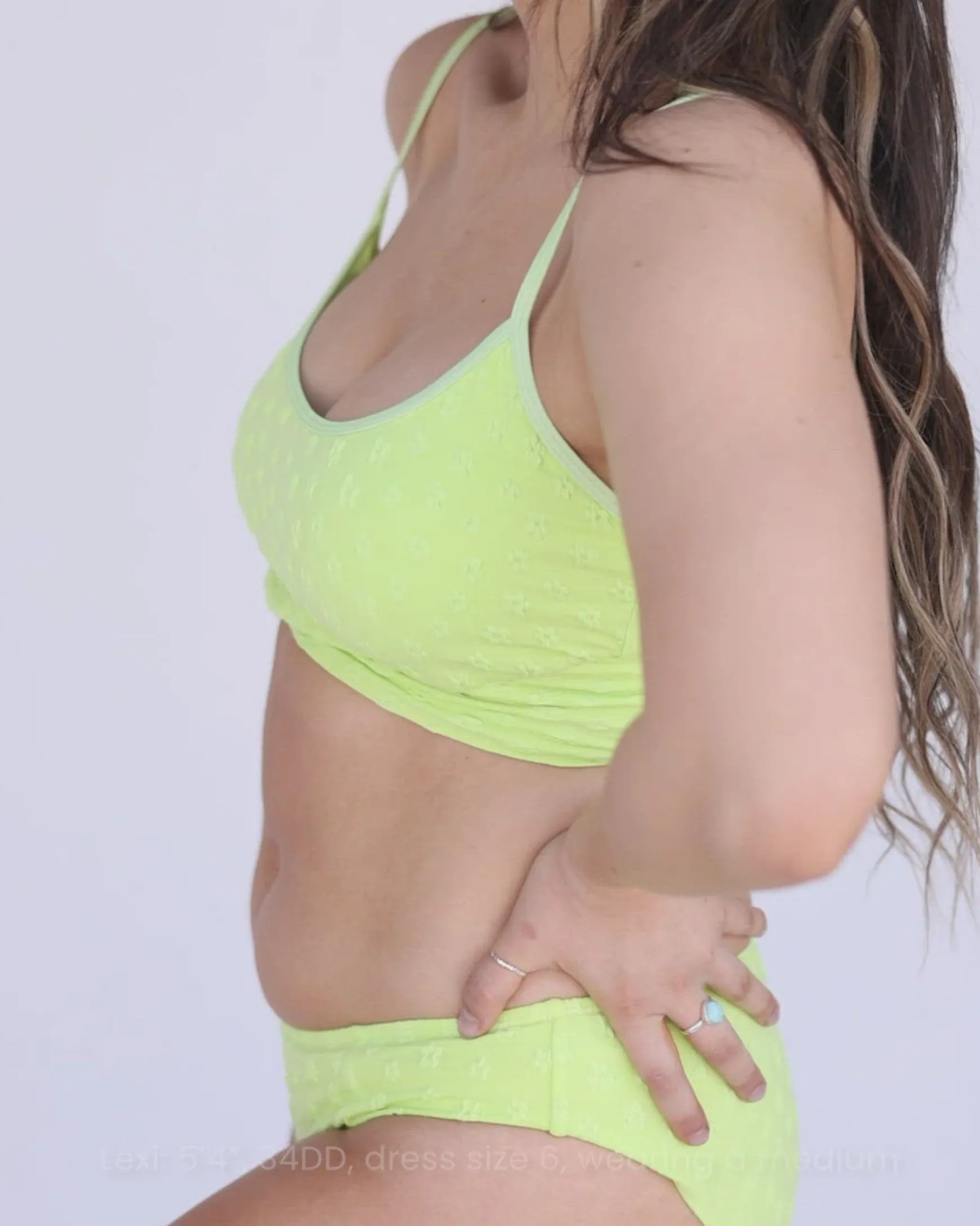 The Lime Tone Crop is the perfect bright and bold top with a soft texture. Adjustable spaghetti straps for comfort and minimal tan lines. A 2022 favorite to say the least!