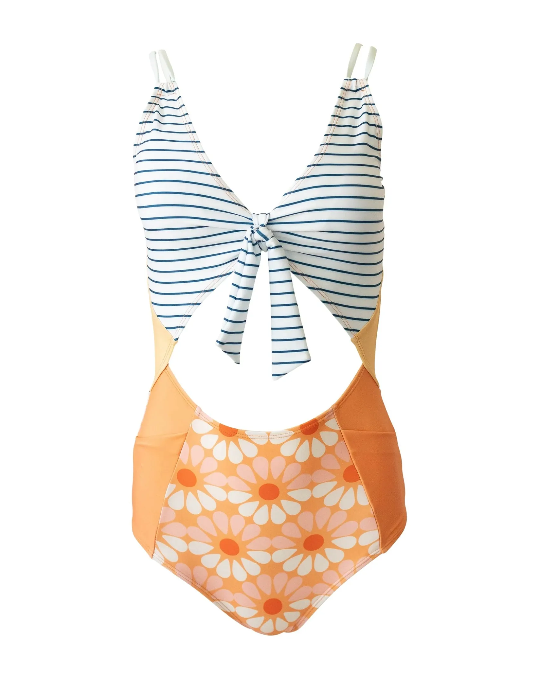 Stand out next time you hit the water in this bold mixed print fan favorite. The High Tide One Piece has adjustable straps to fit every height and wouldn’t be complete without the classic Nani pockets. Daisy print on bottom with Keller trim and our Navy Pinstripe print on top.
