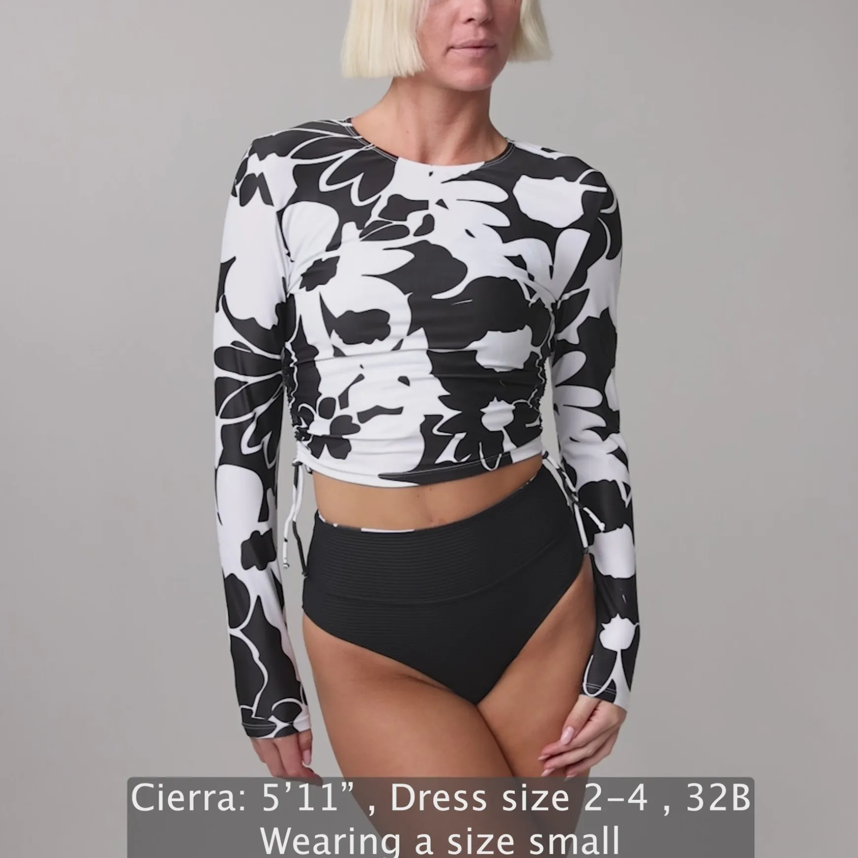 Introducing the Nani Swimwear Cropped Rashguard. Combining cutting-edge designs and practicality, this cropped rashguard has adjustable side ties for a personalized fit. Crafted from high-quality, quick-drying fabric, it offers superior comfort and durability. With UPF-rated fabric, it provides excellent sun protection. Embrace versatility and easy care with this must-have addition to your swimwear collection.