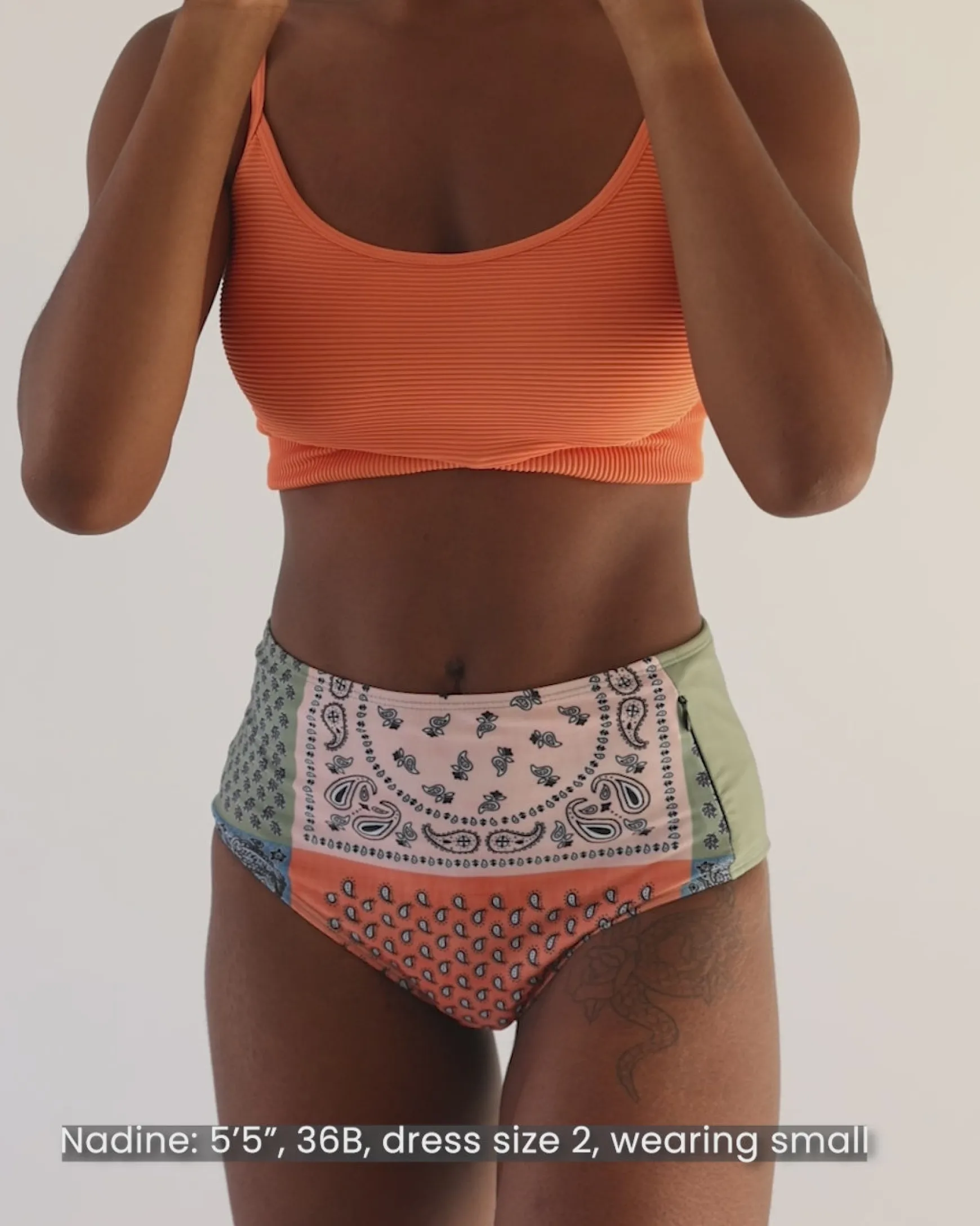 This bottom is a great option for a classic, simple style with a twist featuring a hidden zipper pocket on the side panel.