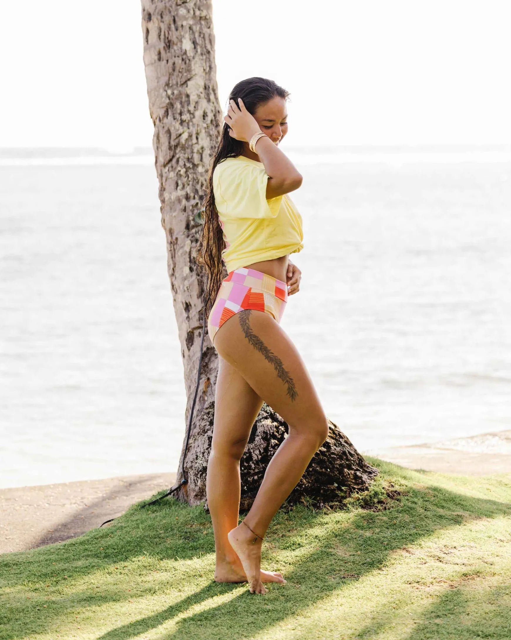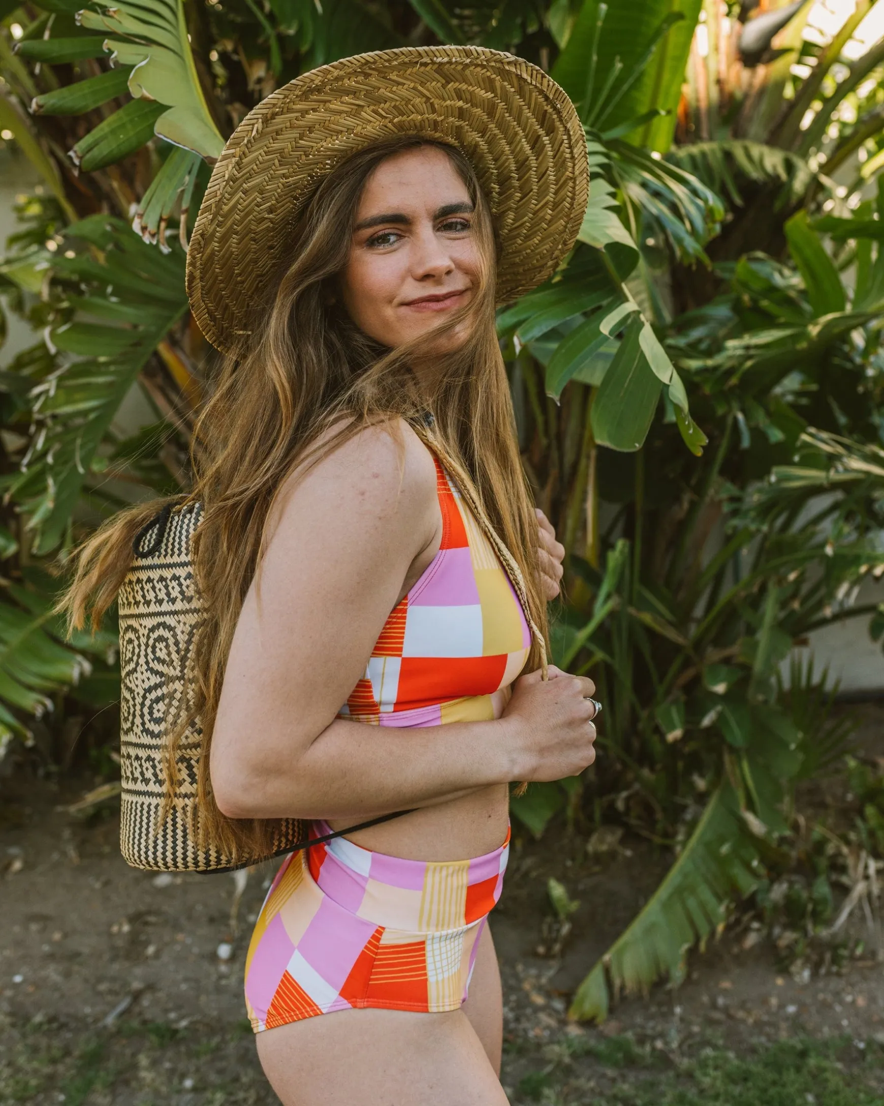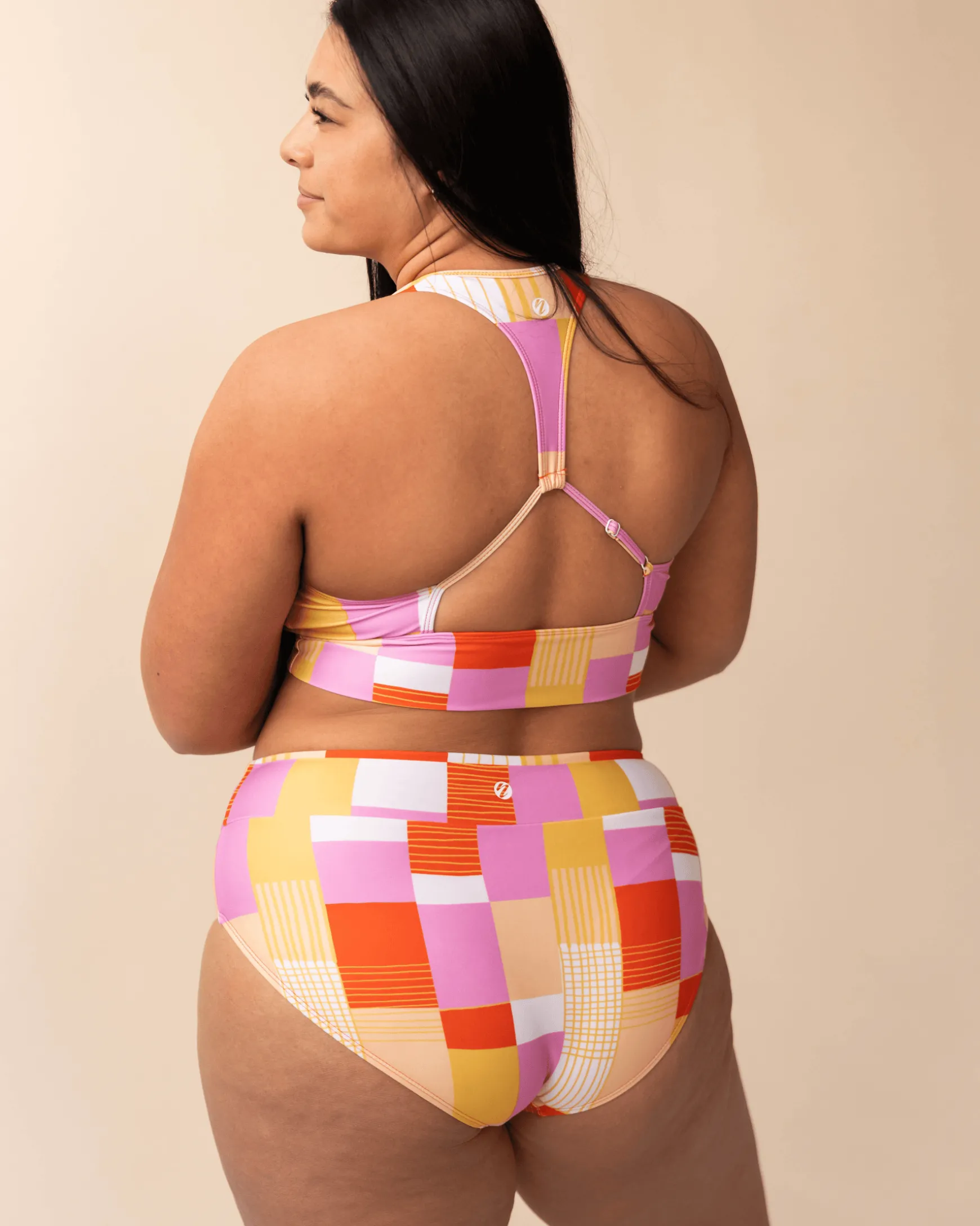 Mixing color and style, this mid rise bottom mixes and matches with a variety of tops in the Endless Summer Collection. Our new colorblocked pattern adds a modern flair to a classic style.