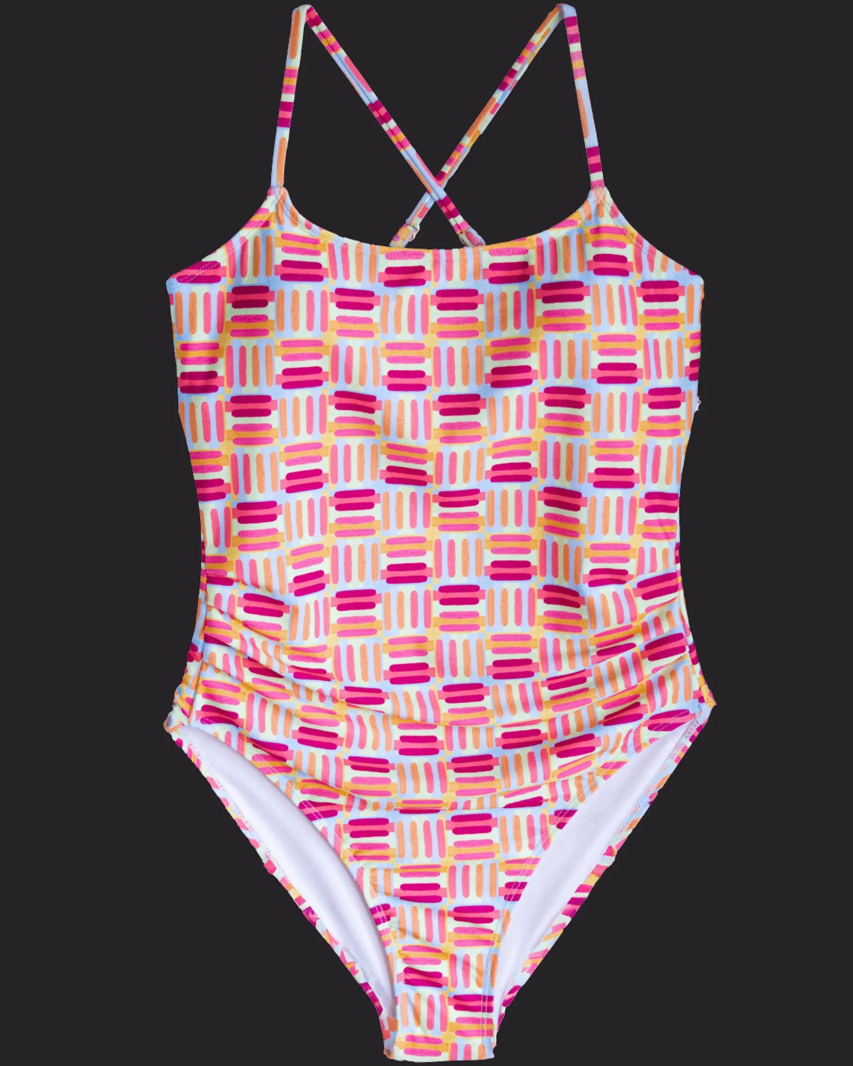 Introducing the Stevie One Piece, where style meets functionality. Designed with adjustable straps that crisscross in the back, this swimsuit provides excellent bust support while allowing you to customize your fit. The slight side ruching enhances your silhouette for a flattering look, while the higher-cut leg offers a chic and elongated appearance.