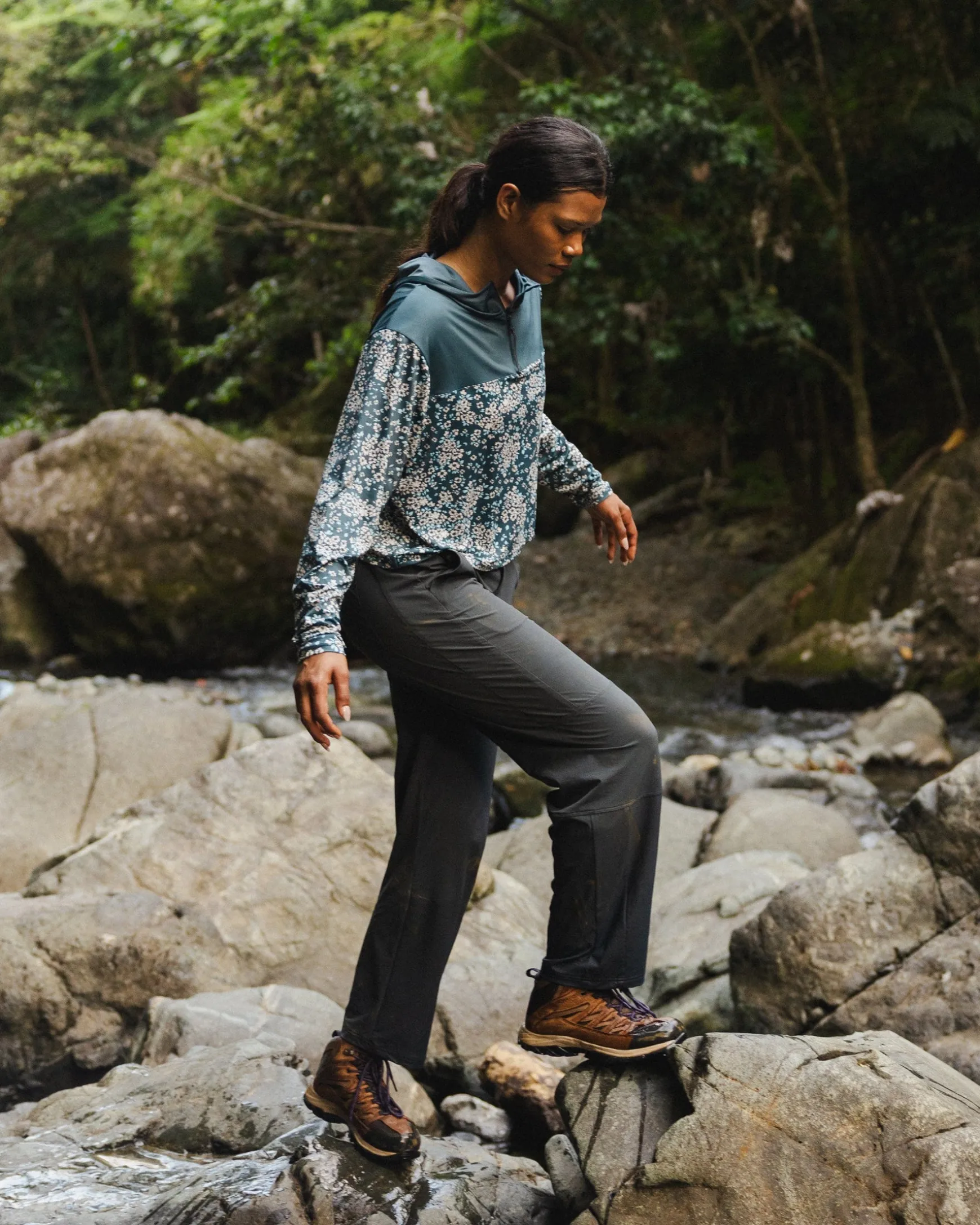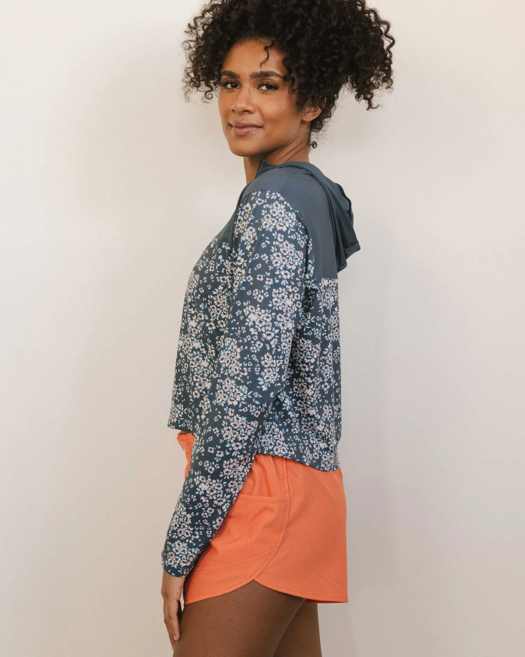 With its blue floral print and loose-fitting silhouette, it’s made from buttery-soft, cooling fabric that’s breathable and designed to move with you. UPF rated for sun protection, moisture wicking, and easy to care for, this is the layer that goes the distance.